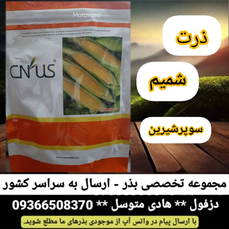 بذر ذرت شمیم محصول شرکت سی ان یو اس (cnus) از بهترین و پر بار ترین بذر ذرت شیرین می باشد. بذر ذرت شمیم رقمی شیرین بوده و در بسته بندی پاکت 400 گرمی به فروش می رسد.
