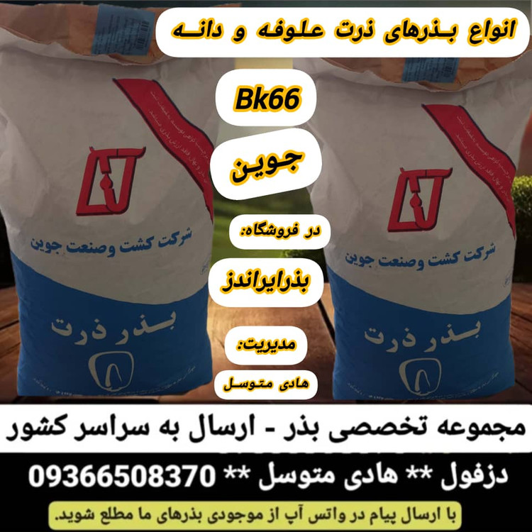 بذر ذرت بی کی 66 (BK 66) برکت جوین از بهترین و پر بار ترین بذر ذرت علوفه ای می باشد. بذر ذرت بی کی 66 (BK 66) برکت جوین رقمی دو منظوره بوده و در بسته بندی پاکت 25 کیلویی به فروش می رسد.