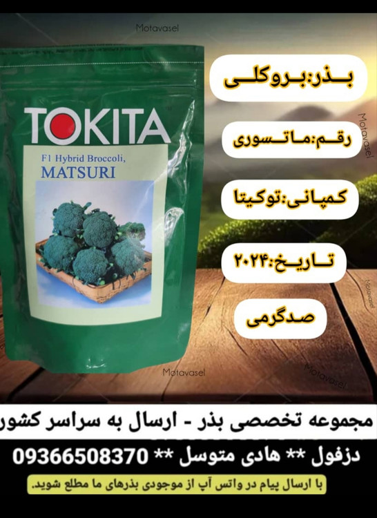 بذر کلم بروکلی ماتسوری محصول شرکت توکیتا ژاپن از بهترین و پر بار ترین بذر کلم بروکلی می باشد. بذر بروکلی ماتسوری توکیتا رقمی هیبرید بوده در بسته بندی پاکت های 100 گرمی به فروش می رسد.