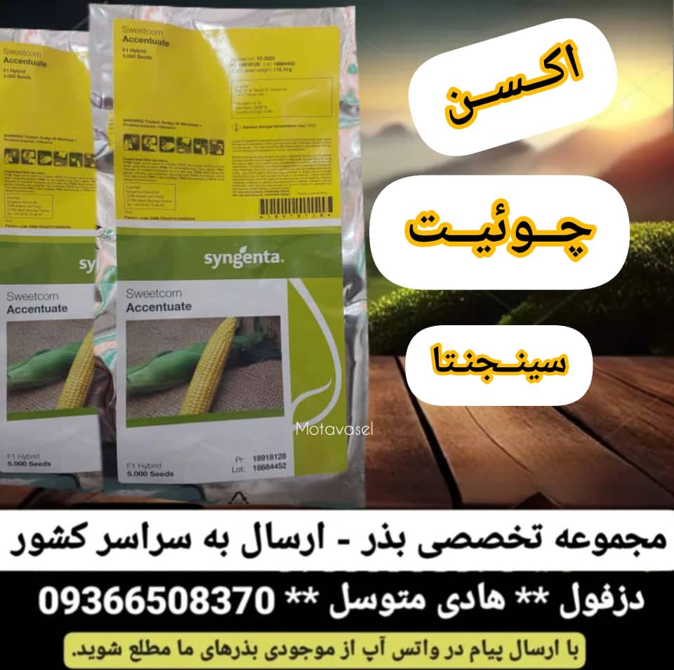 بذر ذرت اکسن چوئیت محصول شرکت سینجنتا فرانسه از بهترین و پر بار ترین بذر ذرت شیرین می باشد. بذر ذرت اکسن چویت رقمی سوپر شیرین بوده و در بسته بندی پاکت 5 هزار عددی به فروش می رسد.