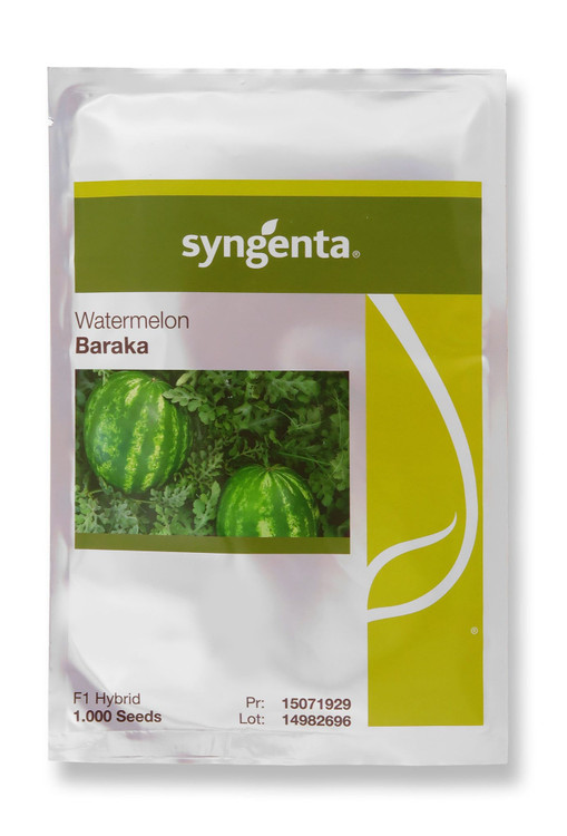 بذر هندوانه باراکا محصول شرکت سینجنتا سوییس از بهترین و پر بار ترین بذر هندوانه می باشد. هندوانه باراکا سینجنتا رقمی هیبرید با تیپ گرد بوده و در بسته بندی پاکت 1000 عددی به فروش می رسد.