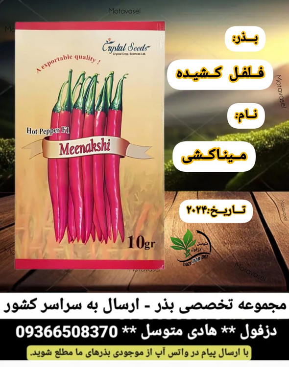 بذر فلفل میناکشی محصول شرکت کریستال سید هند بوده که در پاکت های 10 گرمی به بازار عرضه می گردد. بذر فلفل تند میناکشی یکی از ارقام فلفل قلمی بوده که در مناطق مختلف کشور از جمله استان های هرمزگان و خوزستان مورد کاشت قرار می گیرد.