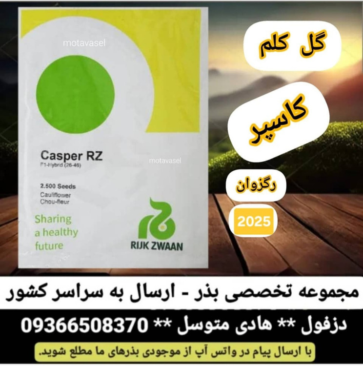 بذر گل کلم هیبرید کاسپر، محصول شرکت رکزوان، رقمی هیبرید و زود رس می باشد. این رقم برای کشت در فضای باز مناسب بوده و مقاومت بالایی نسبت به گرما دارد. شکل میوه، گرد و به رنگ سفید بوده و به دلیا تراکم بالا در میان کشاورزان از جایگاه ویژه ای برخوردار است. سال تولید 2023 می باشد.